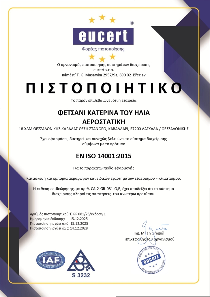 Από το 2025 η εταιρία είναι πιστοποιημένη με πιστοποιητικό